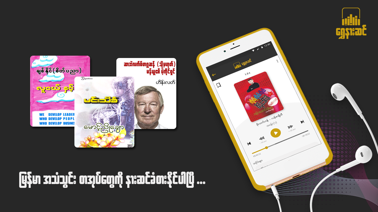 ရွှေနားဆင်တွင် အသံထွက်ဝတ္ထုပေါင်းများစွာကို နေ့စဉ်ဝန်ဆောင်မှု ရယူပြီး နားဆင်နိုင်ပါသည်။
